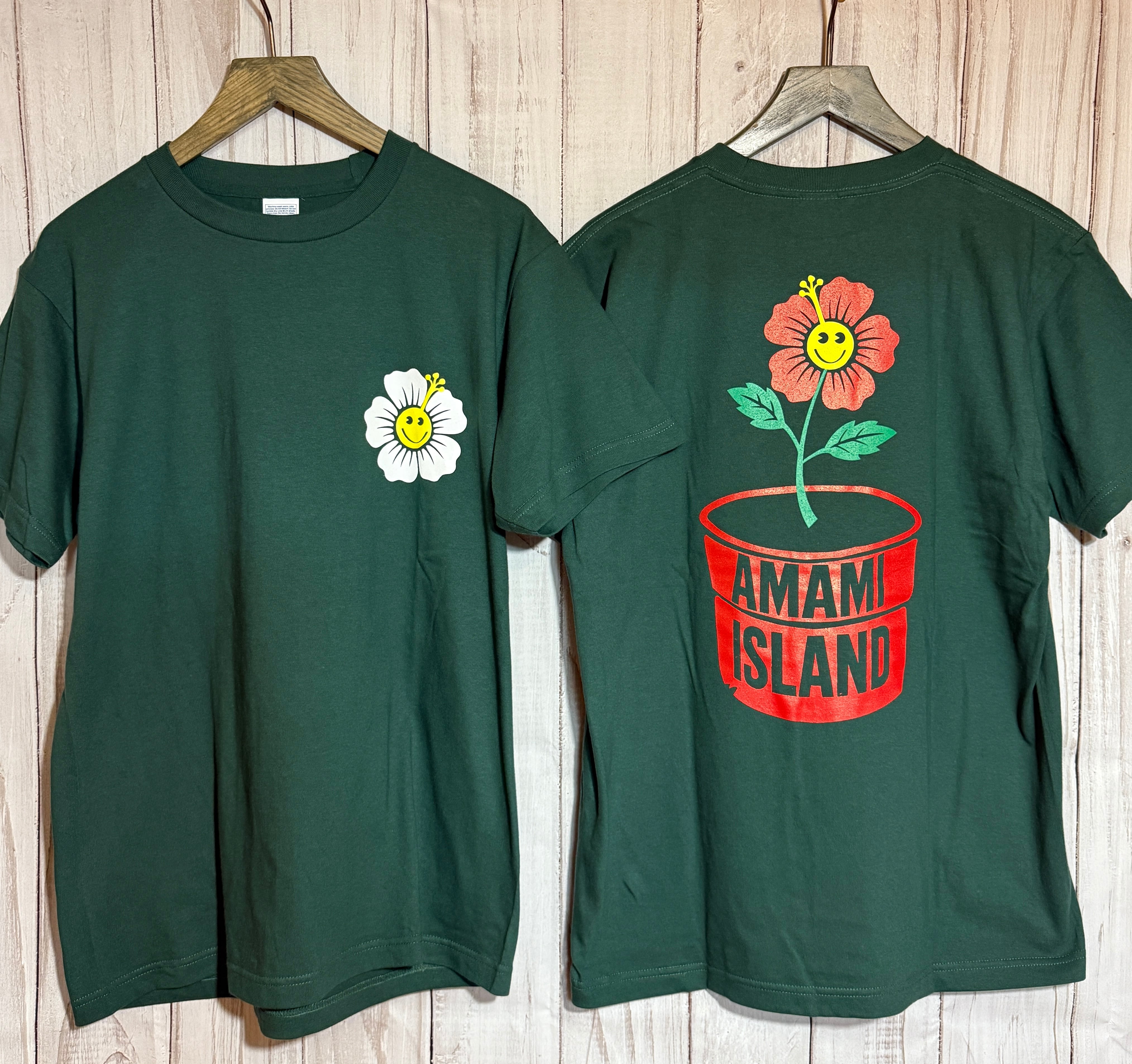 【奄美アイランド】鉢植えハイビスカスTシャツ グリーン